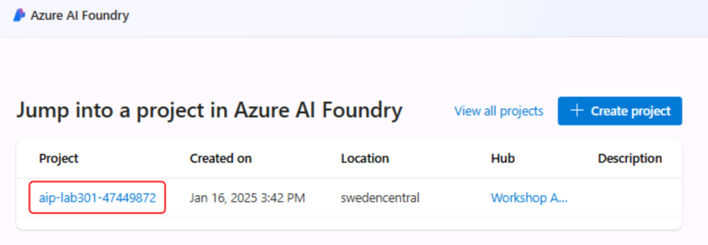- An Azure AI Foundry hub named agent-wksp